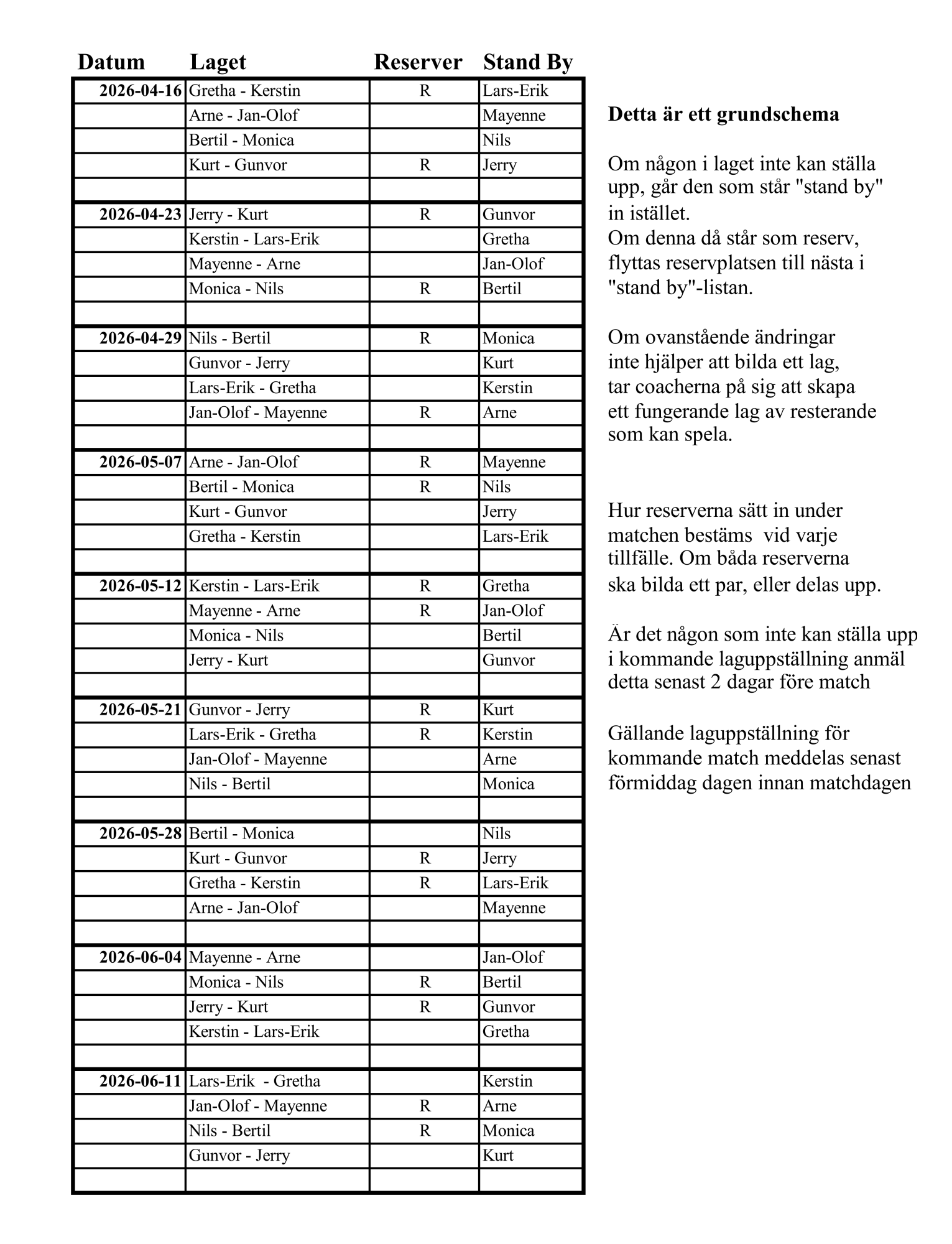 Preliminär laguppställning våromgången.