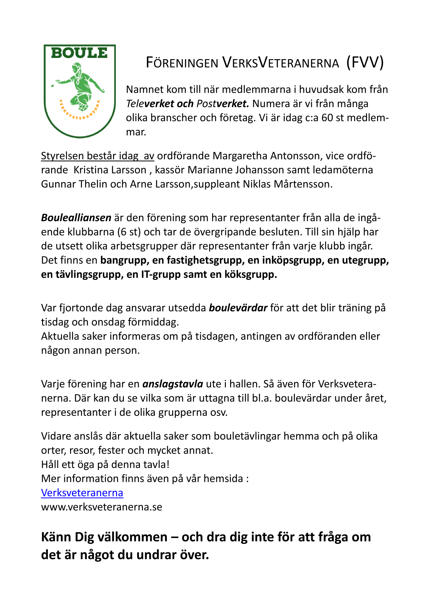 Information till nya medlemmar.